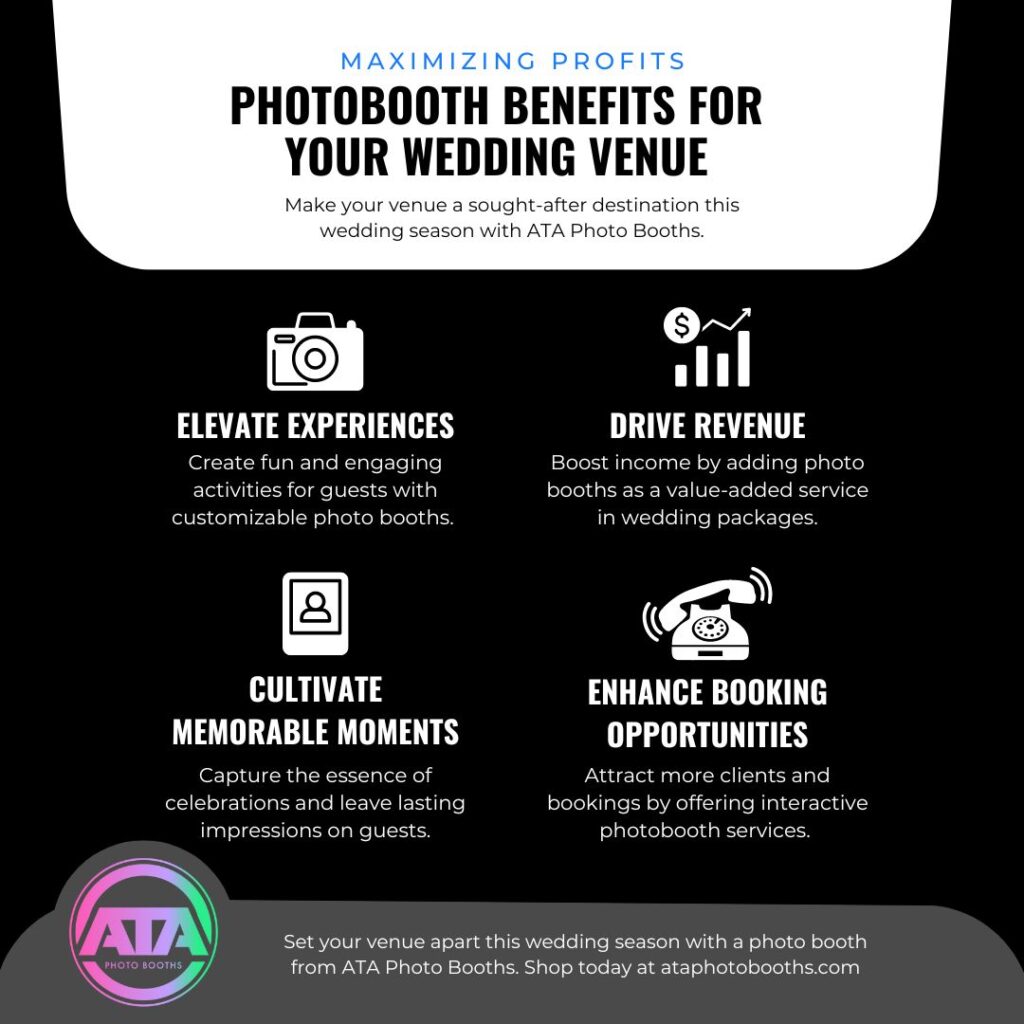 With wedding season fast approaching, wedding venues are seeking innovative ways to enhance guest experiences and increase revenue. Incorporating a photo booth at your venue can provide guests with a unique and interactive experience while creating an additional revenue stream. Learn how integrating an ATA Photo Booth can maximize profits and create unforgettable moments at your wedding venue this season.