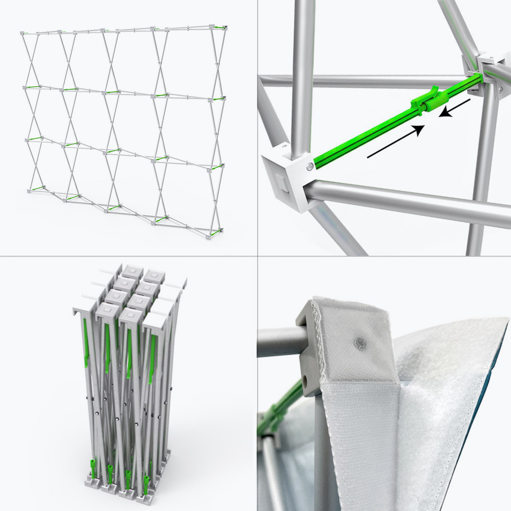 • 118″ x 89″ accordian style pop-up frame
