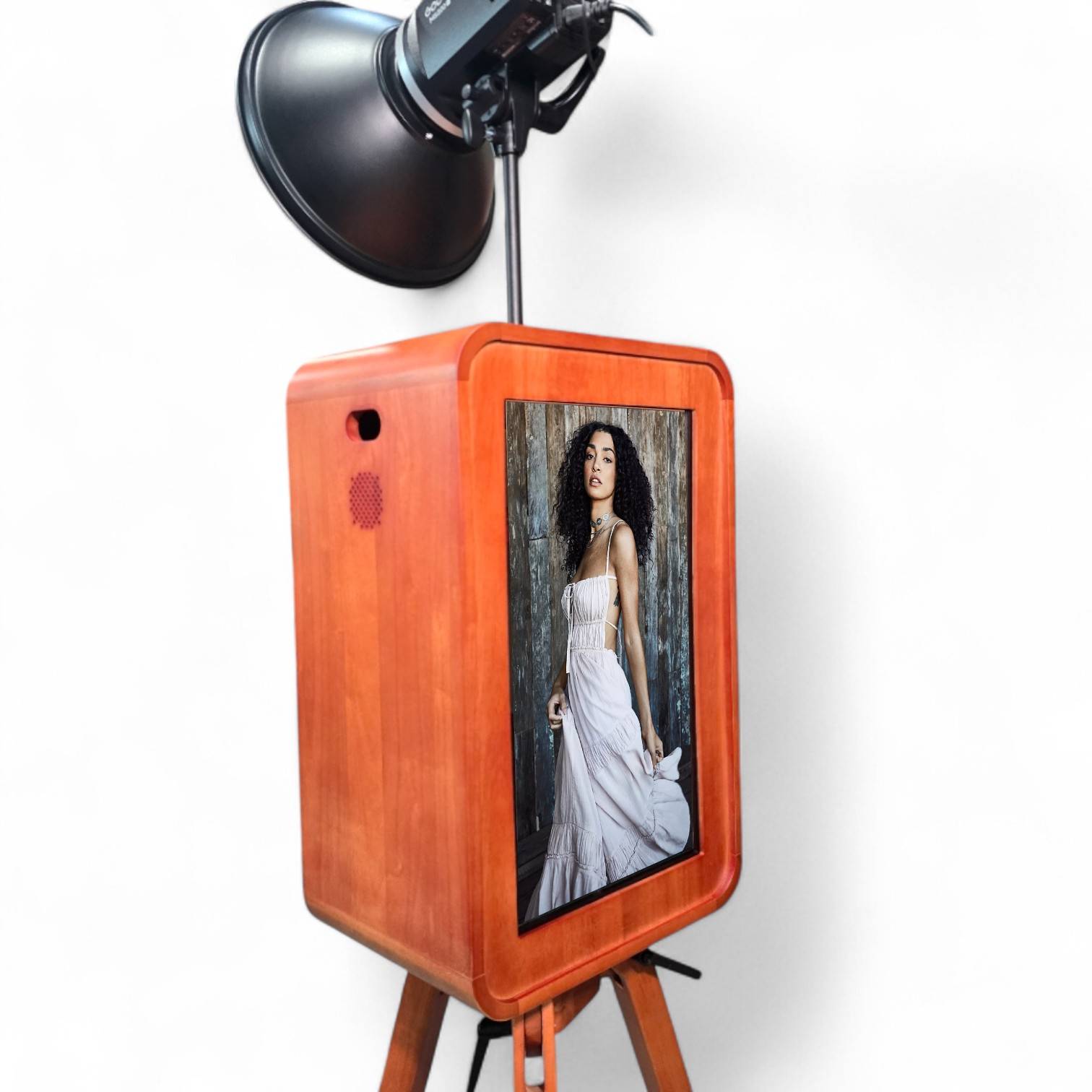 This booth features a vibrant 18-inch touchscreen display, powered by an Intel i5 Windows PC. Ideal for showcasing photo galleries, it’s also perfect for advertising and digital branding.