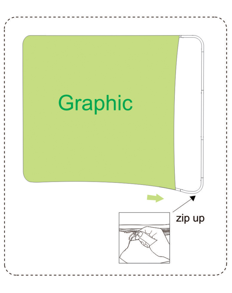 Step 2: Wrap up the frame with the graphic from left to right, then zip up.