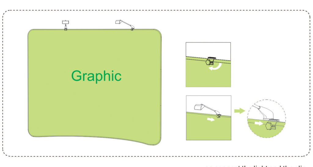Step 3: Put the light clip on the top of the display and fix it with screw, then connect the light and the clip.