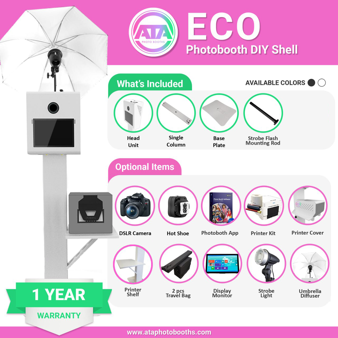 This photo booth is equipped with a lightweight and easily assembled side-mounted printer shelf that can support up to 40 pounds of weight.