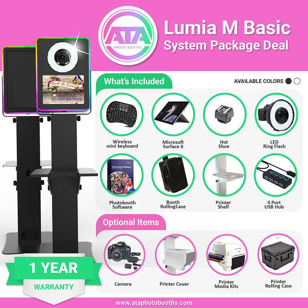 The Lumia M Basic Photo Booth DIY Shell is a modern, eye-catching foundation built for fast setup and dependable event performance. Featuring synchronized LED edge accents with chasing light effects, a tiltable head unit, and clean cable management, this DIY shell delivers strong visual impact and reliable lighting—perfect for weddings, parties, and corporate events.