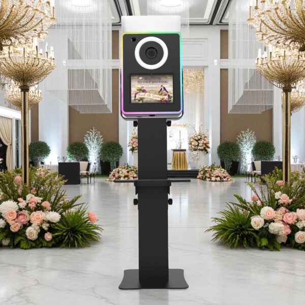 The tilting mechanism on this enhanced photobooth allows you to capture a wide range of subjects with ease. Whether you’re taking a photo of a large group or a single individual, the tiltable head unit makes it easy to adjust the camera angle to suit your needs.