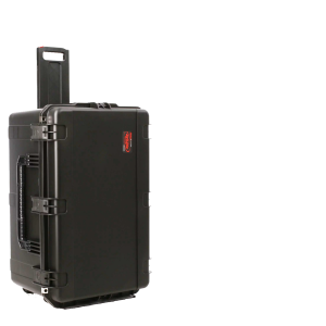 The travel case boasts a waterproof exterior and is designed with wheels and tow handles for effortless maneuverability and transport. Inside, it features a custom-fitted foam insert that securely holds and protects your photobooth and the printer shelf, all in one case.