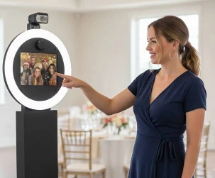 Elevate your photo experience with the Phantom Pro, delivering studio-quality images in any setting. Add an optional speed light to the Phantom Pro photo booth for perfectly lit shots every time. This powerful enhancement eliminates shadows, boosts color vibrancy, and ensures sharp, detailed photos with every capture