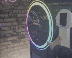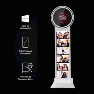 Our photobooth display is customizable based on the event space. Aside from it’s head tilt, you can reverse the head unit 180 degrees. This allows for the LCD display to be visible while the photobooth is in use.