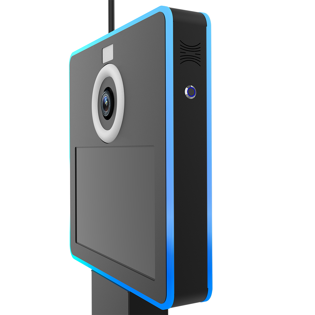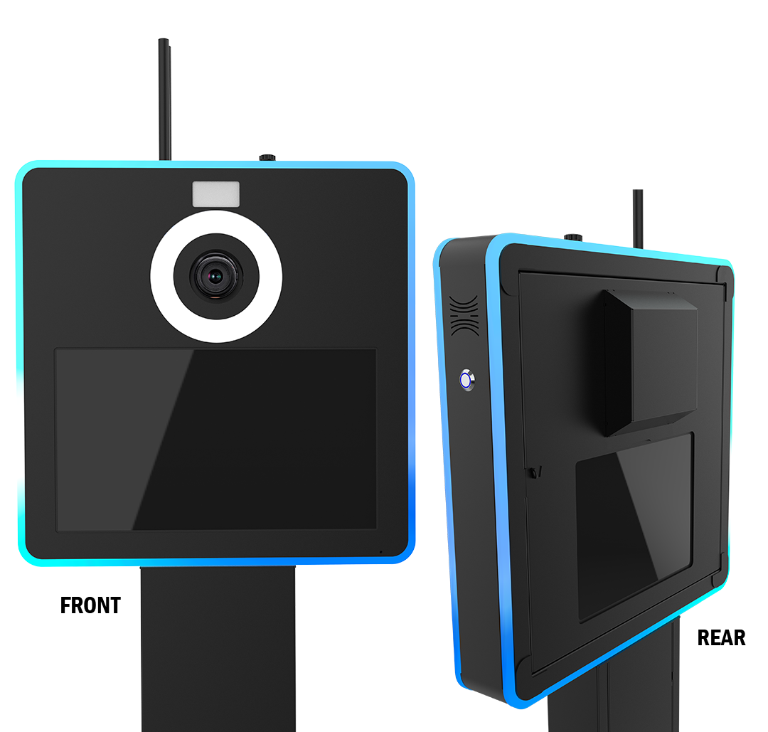 At the core of this photobooth is a dual-display architecture designed for both engagement and control. The front-facing 18.5-inch capacitive touchscreen serves as the primary guest interface—large, bright, and highly responsive for seamless interaction.